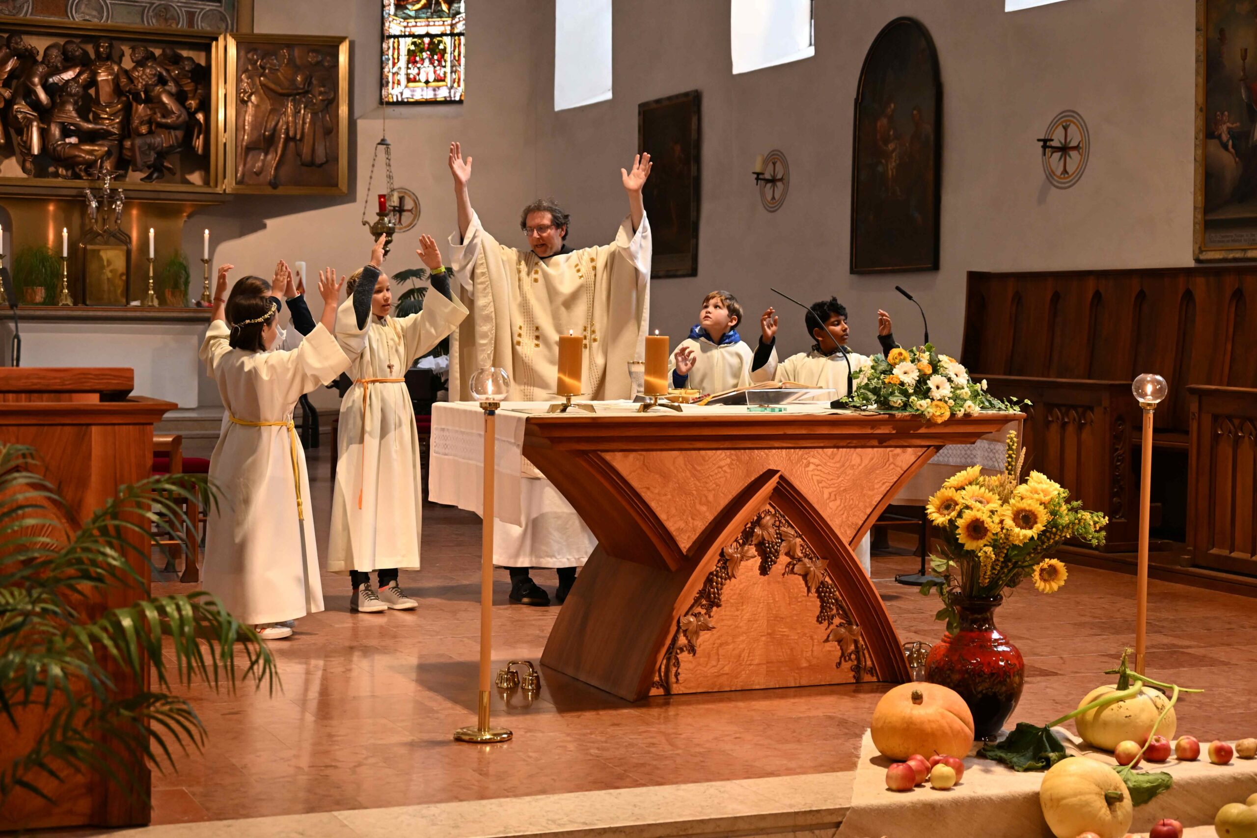 Unter diesem Motto zelebrierte Pater Martin eine eindrucksvolle Ernte-Dank-Gottesdienst, unterstützt von den Ministranten und den prägenden Liedern, gefühlvoll intoniert vom Chor Juvenis unter Pater Raimund.