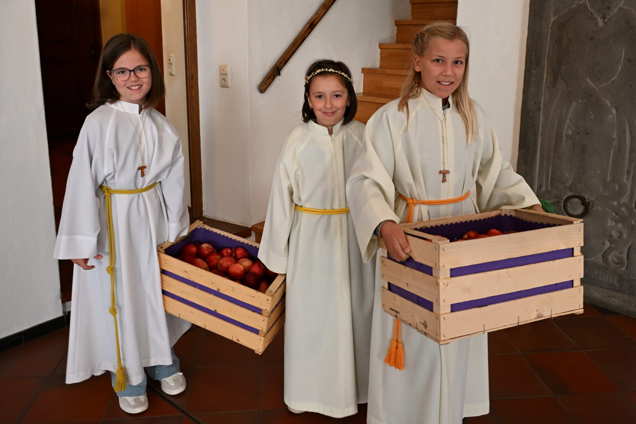 Zur Agape wurden dann von unseren Ministrantinnen geweihte Äpfel verteilt.